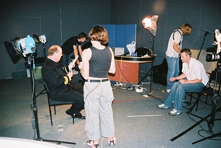 Behind-the-scenes photo from the Survivors series two DVD studio day, London, 3 June 2004 (4/12)
