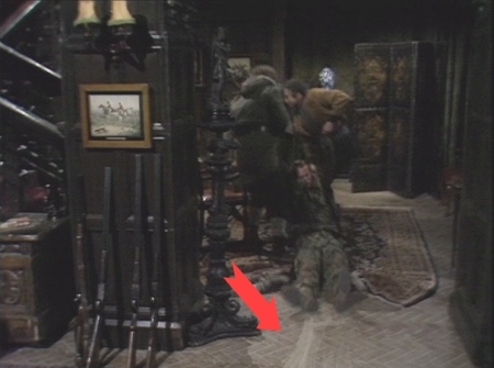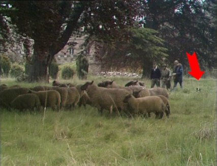 Goof: A face appears in the window of the pub on the opposite side of the street