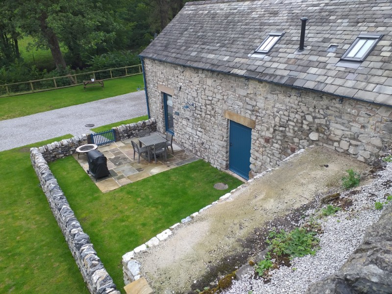 The new fencing in position at the side of the Dean Cottage double garage in Monsal Valley