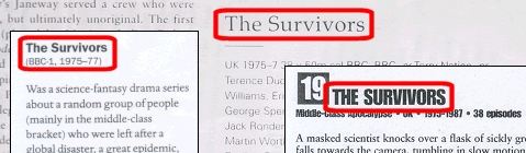 In the later winter of 1974, while this new end-of-the-world show was in pre-production, it was briefly called 'The Survivors' before wiser counsel prevailed and the redundant prefix was dropped. Since the day the first Radio Times listing for the show appeared in April 1975 there has been no ambiguity whatsoever about its name.